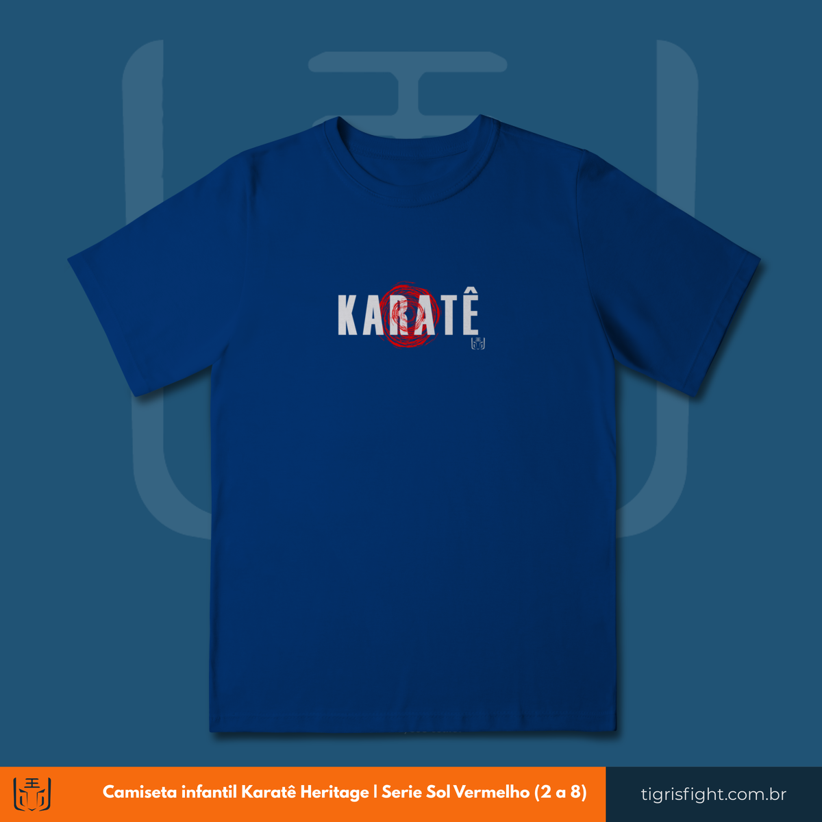 Esta camiseta faz parte da coleção Karatê Heritage – Série do Sol Vermelho, inspirada nos valores do karatê como respeito, disciplina e dedicação desde cedo.