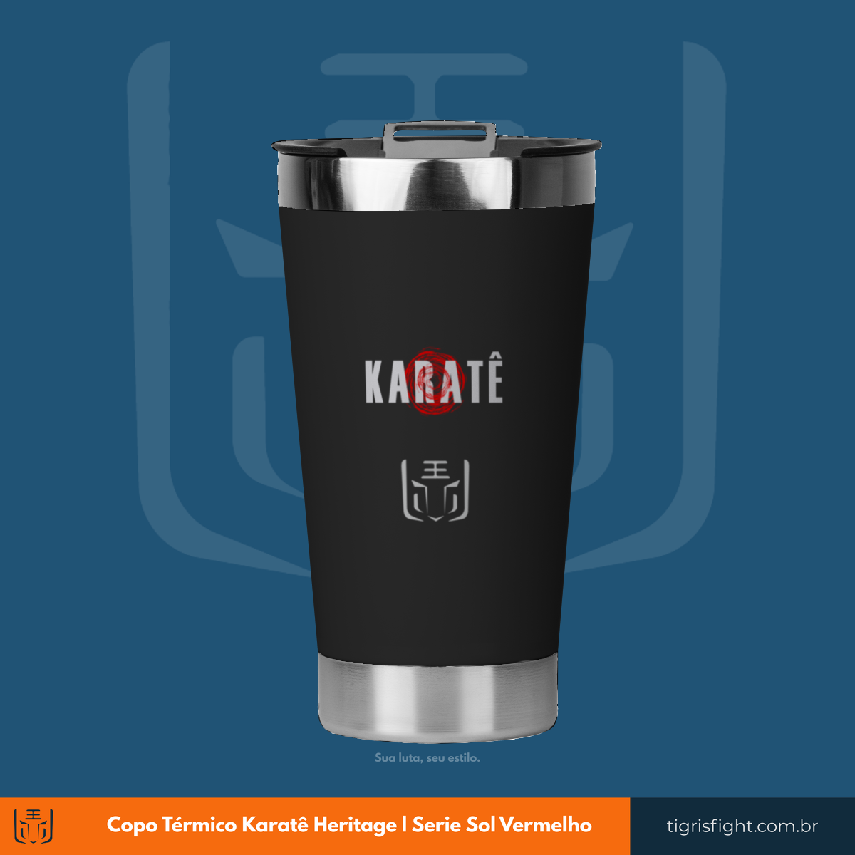 Este copo faz parte da coleção Karatê Heritage – Série do Sol Vermelho, criado para quem vive o karatê com disciplina, constância e propósito em todos os momentos do dia.